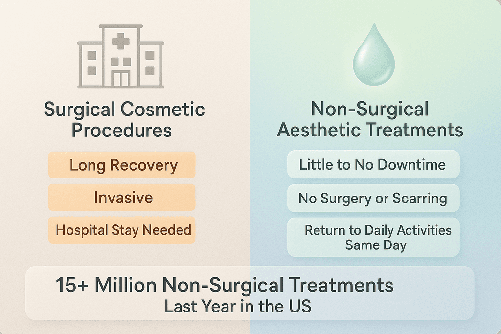 More than 15 million people in the United States got non-surgical cosmetic treatments last year, making them way more popular than actual surgery. Non-surgical cosmetic treatments are medical procedures that improve how you look without cutting into your skin or needing a hospital stay. They include things like Botox, dermal fillers, laser treatments, and microneedling. The best part is you can usually go back to your normal day right after, and nobody has to know you had anything done.