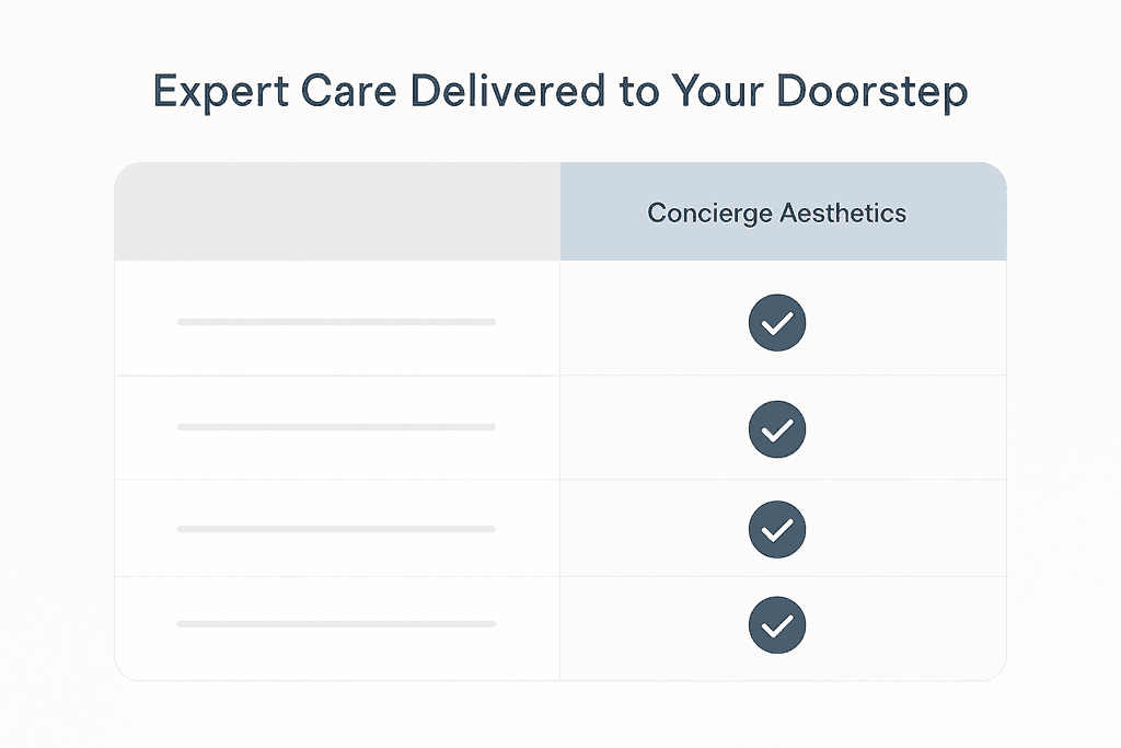 Concierge aesthetics brings together three things that matter most when it comes to your wellness journey. Privacy means you can receive treatments without the stress of traveling or being in a clinical setting. Expertise ensures that highly trained professionals, like ICU nurses and aesthetic specialists, bring the same level of care to your home that you’d get in a medical facility. Flexibility lets you schedule treatments around your life instead of rearranging everything to fit an appointment.