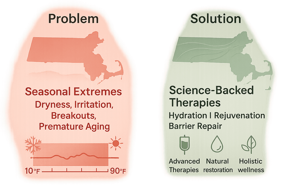 Massachusetts experiences some of the most dramatic weather swings in the country, with temperature differences of up to 80 degrees between January and July. Your skin has to work overtime to adapt to these constant changes, and most of the time it can’t keep up on its own. The result is a year-round cycle of dryness, irritation, breakouts, and premature aging that leaves many people frustrated with their complexion. Understanding what each season does to your skin is the first step toward natural skin rejuvenation that actually works.