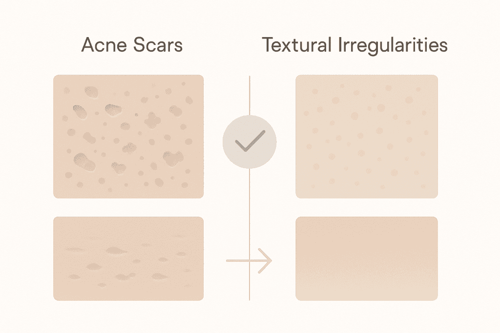 Ice pick scars are those deep, narrow indentations that look like someone poked your skin with a tiny tool. Boxcar scars have wider depressions with defined edges. Rolling scars create a wave-like texture across your skin.